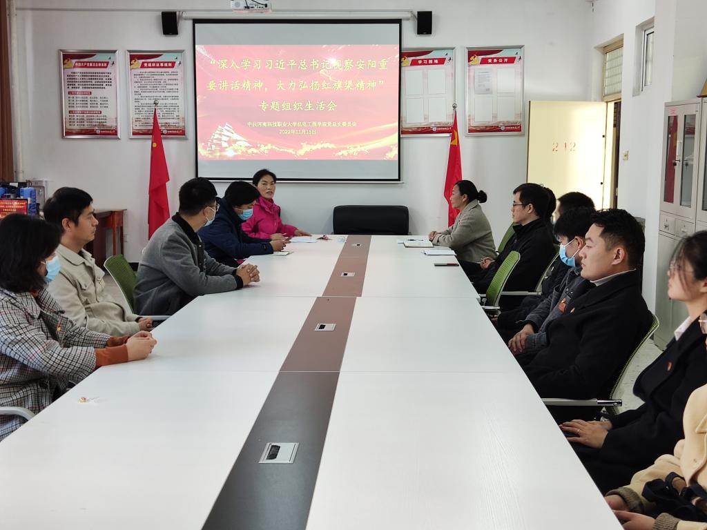 为了促进机电工程学院各党支部能够更好的开展工作,河南科技职业大学机电工程学院党总支于2022年11月15日在实训中心212召开专题组织生活会。本次专题组织生活会的主题内容为“深入学习习近平总书记观察安阳讲话精神,大力弘扬红旗渠精神”,本次专题组织生活会使得各党支部所有成员的精神风貌更加饱满。