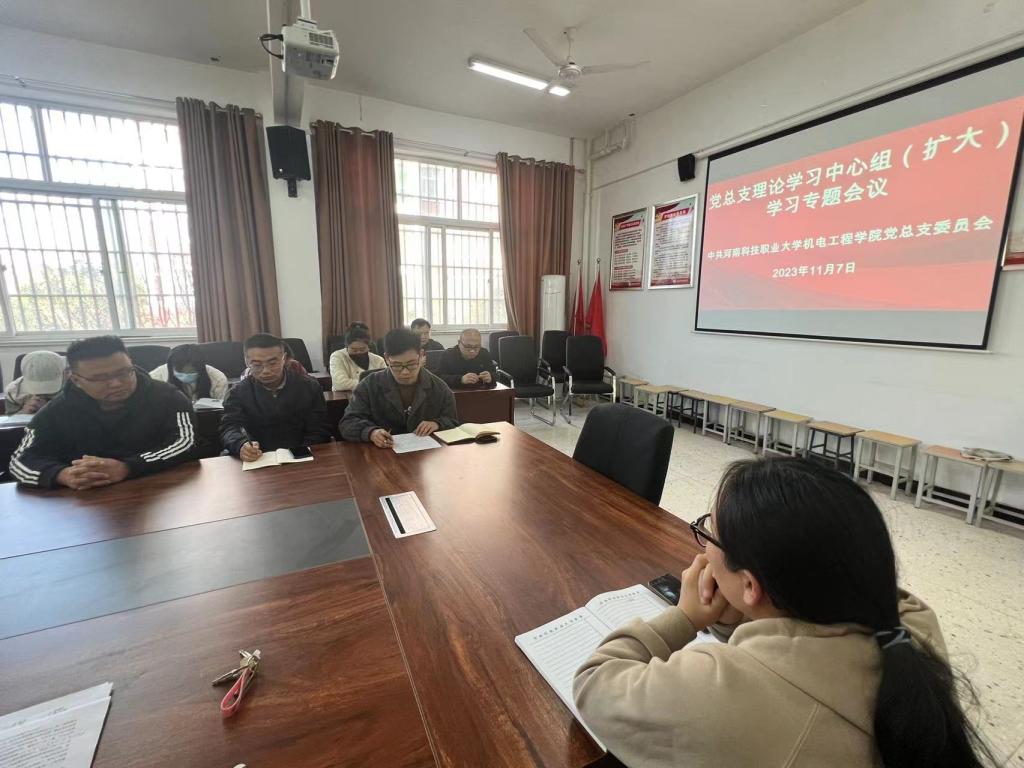 为深入学习贯彻习近平新时代中国特色社会主义思想作为主题主线,教育引导理论学习中心组成员树立正确的权力观、政绩观、事业观,提高政治判断力、政治领悟力、政治执行力,2023年11月3日,我院于敏行楼212室召开党总支理论学习中心组(扩大)学习会,学习主题为《全国干部教育培训规划(2023-2027年)》(中共中央印发)、《中国工会十八大报告(精简版)》、习近平对宣传思想文化工作作出重要指示,并结合教育培训工作实际进行研讨交流,院党总支副书记高娜同志围绕本次学习内容做交流发言。
