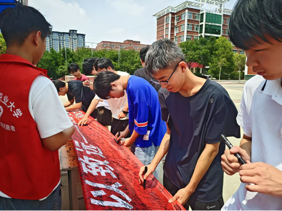 诚信,是中华民族传承千年的传统美德,更是个人立身之本、社会运行之基。在诚信文化建设成为校园精神文明建设核心内容,且青年学生对诚信内涵认知需求持续提升的当下,部分学生仍对诚信的历史渊源、现实意义及实践要求理解不深。为弘扬诚信文化,增强学生诚信意识与责任担当,营造“人人讲诚信、事事守诚信”的校园氛围,机电工程学院于2025年6月13日在学校中专广场开展“诚以载道,信以致远”志愿服务活动,以签字承诺的形式让诚信理念深入人心。