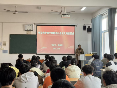 为深入学习贯彻习近平新时代中国特色社会主义思想,强化学生对中国特色社会主义道路的认同与使命担当,2025年11月5日,机电工程学院党委书记崔海花以“坚持和发展中国特色社会主义的总任务”为题讲授专题思政课,课程不仅系统阐释了中华民族伟大复兴的历史逻辑、理论逻辑与实践逻辑,更以“为谁学、学何为、做何功”为导向,为青年学子锚定了成长坐标与奋斗方向。