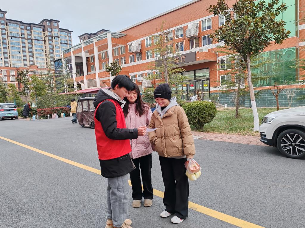 为了让同学们感受到传统节日气氛,弘扬中华优秀传统文化,丰富校园文化,我院于2023年12月22日在学校第二餐厅南门口展开志愿者活动。