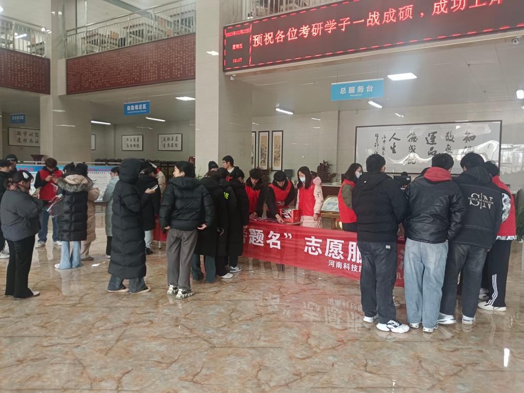 为鼓舞考研学子士气,帮助学子们缓解考试压力,传递温暖力量,我院于2023年12月22日14:00-16:00在我校图书馆开展了“一研为定,金榜题名”志愿服务活动。