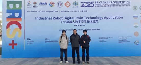 2025年11月30日,金砖国家职业技能大赛(BRICS+未来技能和技术挑战赛)工业机器人数字孪生技术应用赛项国际总决赛在浙江龙游圆满落幕。我校参赛团队凭借扎实的专业功底与出色的现场表现,在全球众多参赛队伍中脱颖而出,荣获三等奖,为学校赢得了国际荣誉。