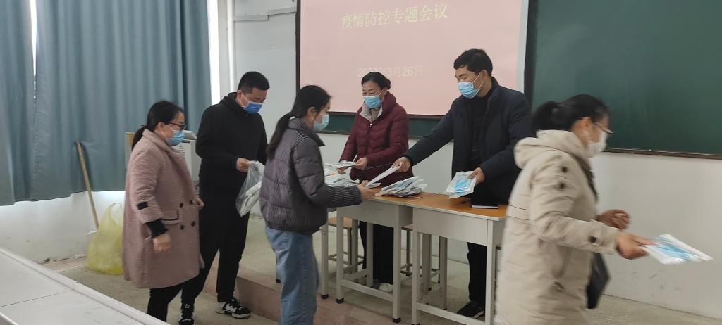 会议起始,崔海花书记结合当前新型冠状病毒感染的肺炎疫情形势,对新学期教学工作提出如下要求:一是提高政治站位,认真落实学校安排。二是教师要严格按照要求,针对各科教学的特点认真准备和实施教学,严肃教学纪律,强化教学中互动和交流。三是由于太康严峻的疫情,要求全体教师校内居住。四是辅导员要做好学生动员,充分调动学生学习的积极性,确保学生学习的效果。五是相关部门和学院要通力配合,相互协调,及时解决问题。随后周吉生副院长再次强调了目前疫情形势严峻,防范疫情刻不容缓。在会议最后崔书记给老师和同学们分发了口罩。