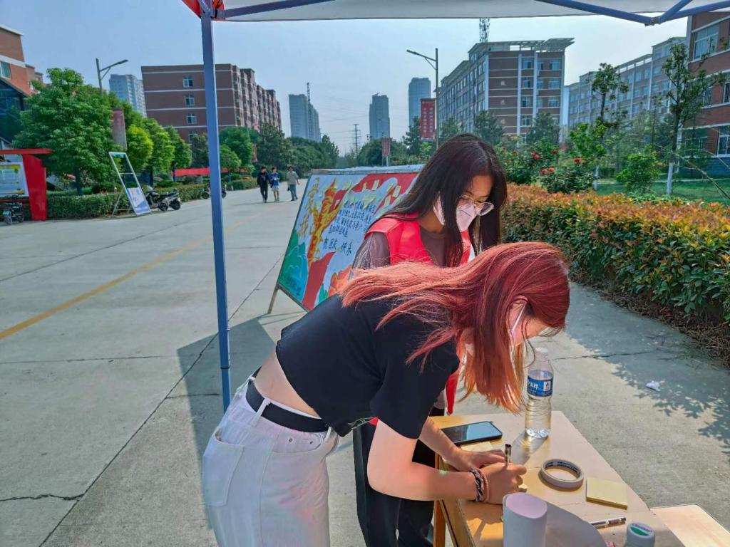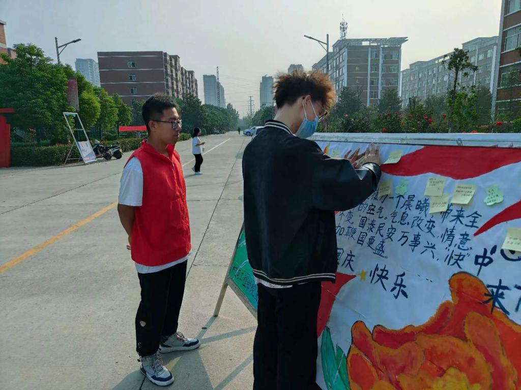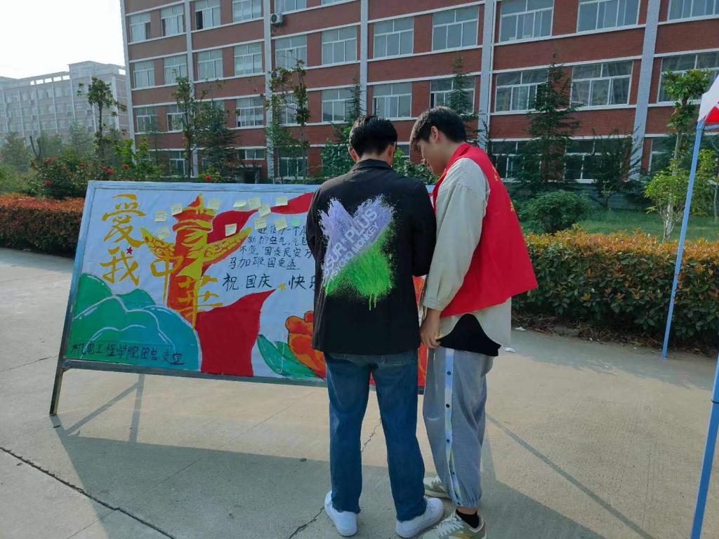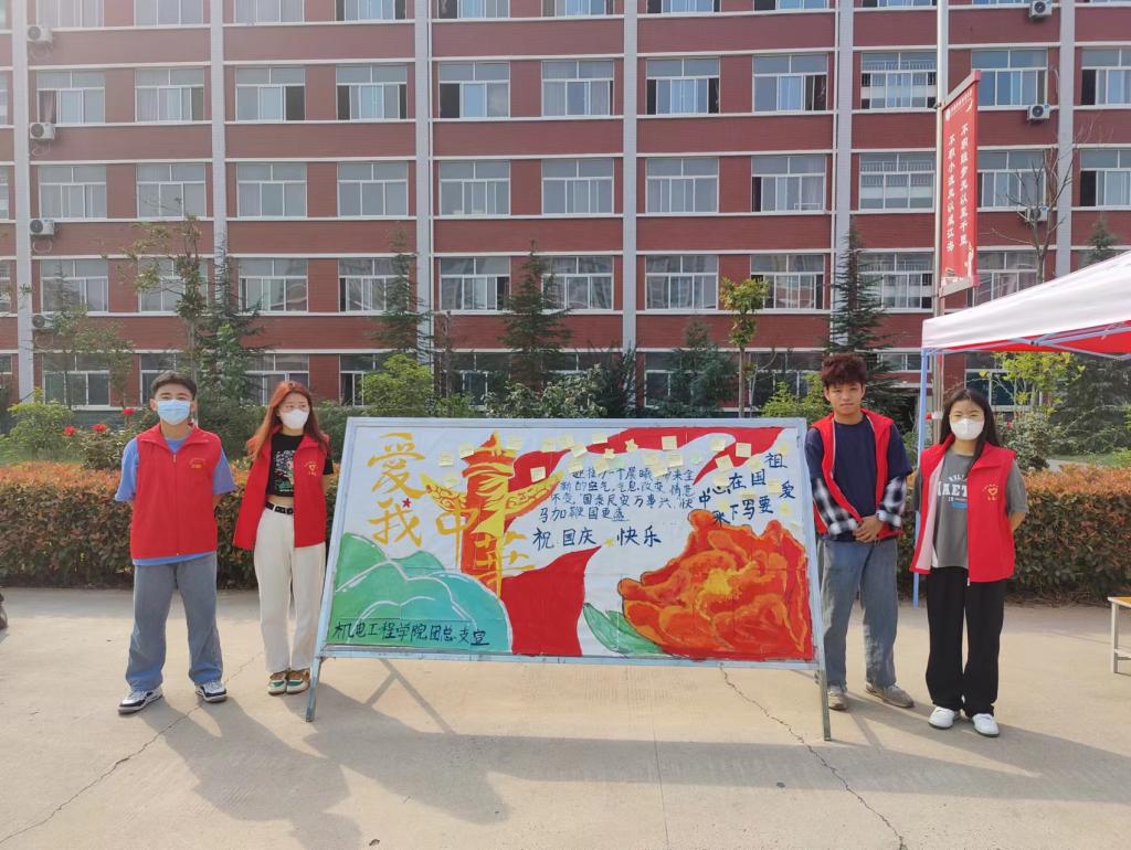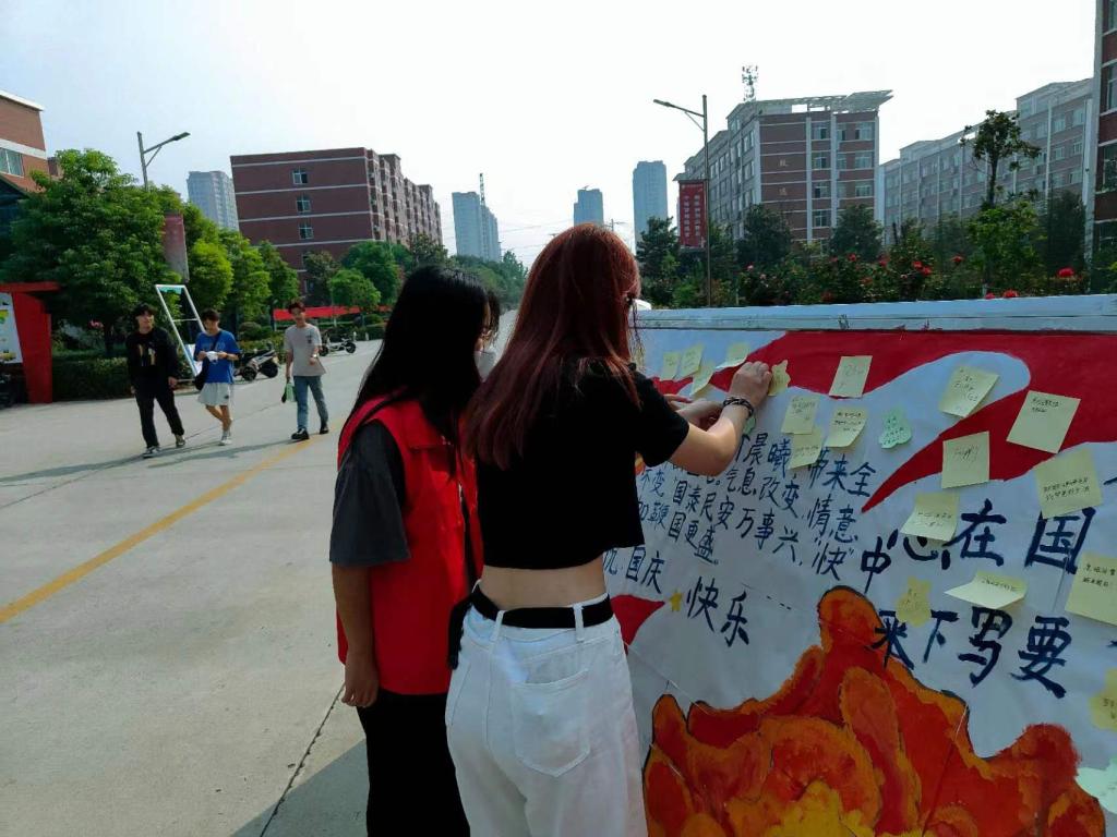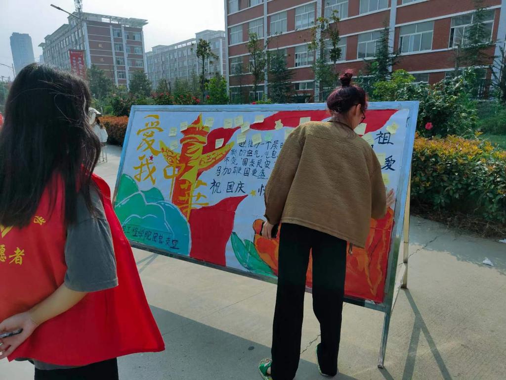 为庆祝祖国母亲七十三华诞,营造一个喜庆热烈、文明祥和的节日氛围。并鼓励同学们大胆的表达自己对祖国的爱,了解我们生在中国是何等幸福,机电工程学院于2022年10月1日在河南科技职业大学第二餐厅南门举行“祖国在心中,爱要写下来”志愿活动。