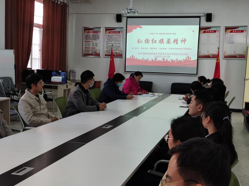 为庆贺党的二十大成功召开,积极响应党的号召,提升党员能力,弘扬传递社会正能量,11月20日下午,机电工程学院教职工党支部开展了“学习红旗渠精神”专题党课学习。高娜书记以“弘扬红旗渠精神”为主题,进行了党课主讲授课。