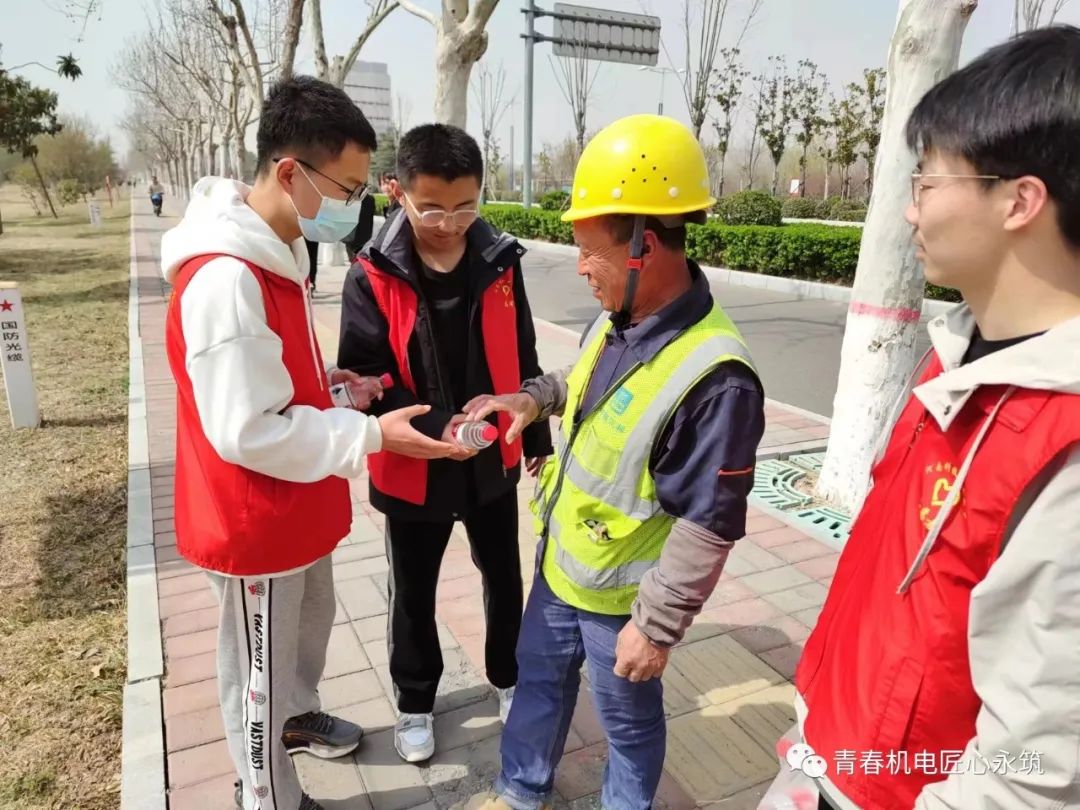为增强学生乐于助人的积极精神,弘扬志愿者志愿服务的精神,增强同学们对雷锋精神的认识。同时也为让学生干部尽到志愿者的义务。河南科技职业大学机电工程学院秉承着奉献、友好、互助、进步的志愿者精神,于2023年3月15日在恒山路至武盛大道沿途路段以及文昌大道与天山路,举办了以“烈日下的坚守 一杯水的敬意”为主题的志愿者活动。