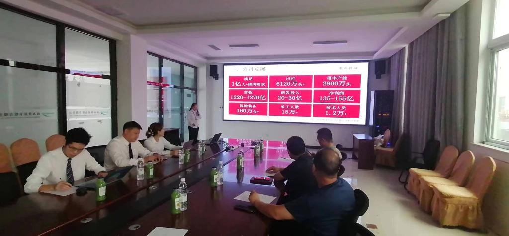 本次调研交流首先由牧原公司人资李俏经理介绍牧原企业的发展情况,观看了企业发展宣传片,介绍了我院2023届毕业生祝博文的入职、实习及工作情况,能够在巡检机器人等设备的维保、使用方面专业技术较为扎实,给与高度评价。接着周吉生院长代表学校感谢企业对新入职员工的培养,并介绍机电工程学院专业建设情况、实训中心建设情况,观看河南科技职业大学发展专题片。最后,校企双方围绕专业建设、学生就业、专业发展和校企合作等契合度较高的关注点,展开了较为深入的交流。最终双方达成初步共识,以本次交流合作为契机,围绕机电工程学院现有专业为基础,实现共同培养在设备应用、维护保养和高低压控制类等专业技能人才,打造周口区域经济发展校企双赢的新高地,积极开阔校企合作的新视野,尽快做出校企合作与人才培养的新成果。
