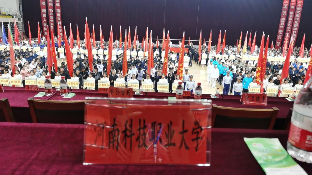 焕发出彩激情,展现时代风采。2023年10月26日9:00,由周口市人民政府主办,市教育体育局、市总工会、市直机关工委、市文明办共同承办的周口市市直机关第四届职工运动会在周口市体育中心隆重开幕。机电工程学院党总支书记崔海花出席本次开幕式,辅导员彭慧敏带领23级本科学生参加。
