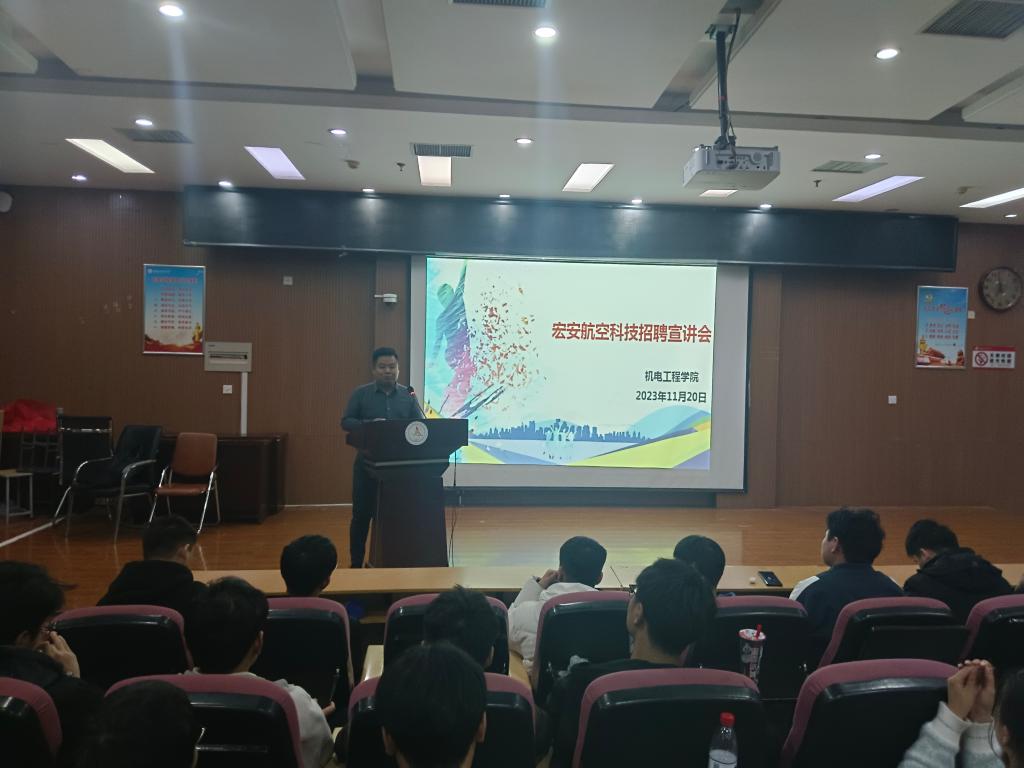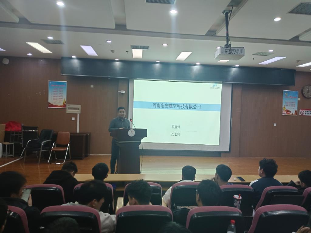 为进一步促进校企合作,让同学们树立正确的就业观念,明确自我定位和努力方向,更好地了解人才市场需求状况,实现校企合作,促进我院学子高质量就业。我院于11月20日在综合楼软座阶梯教室开展了河南省宏安航空科技有限公司招聘宣讲会。