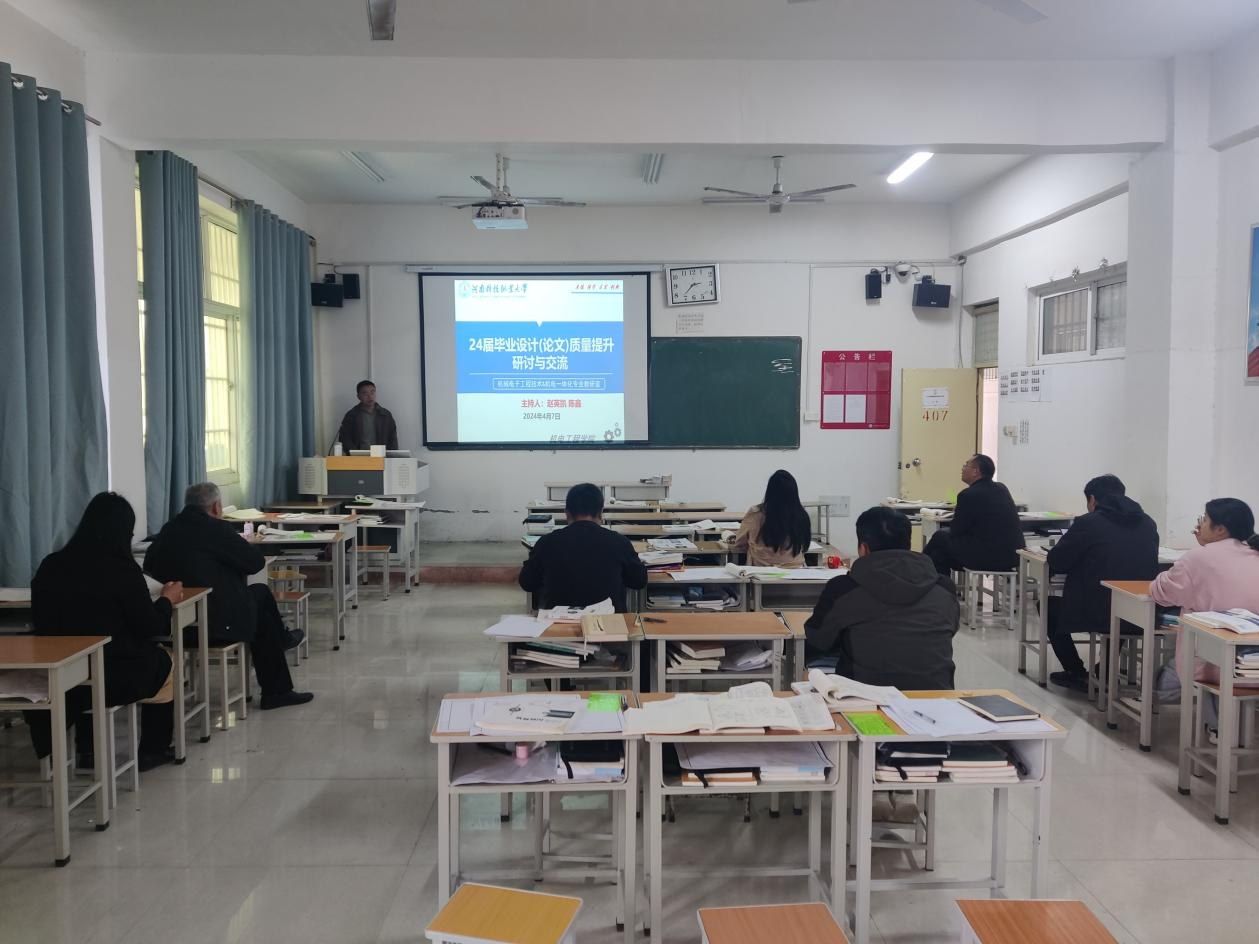 为进一步规范加强本科毕业设计(论文)的过程管理,深化实践教学改革,紧密对接社会需求,提高机械电子工程技术专业本科毕业设计(论文)质量,机电教研室于4月7日下午组织开展了“关于进一步提高学生毕业设计(论文)质量”研讨会,教研室主任、全体教师参加。