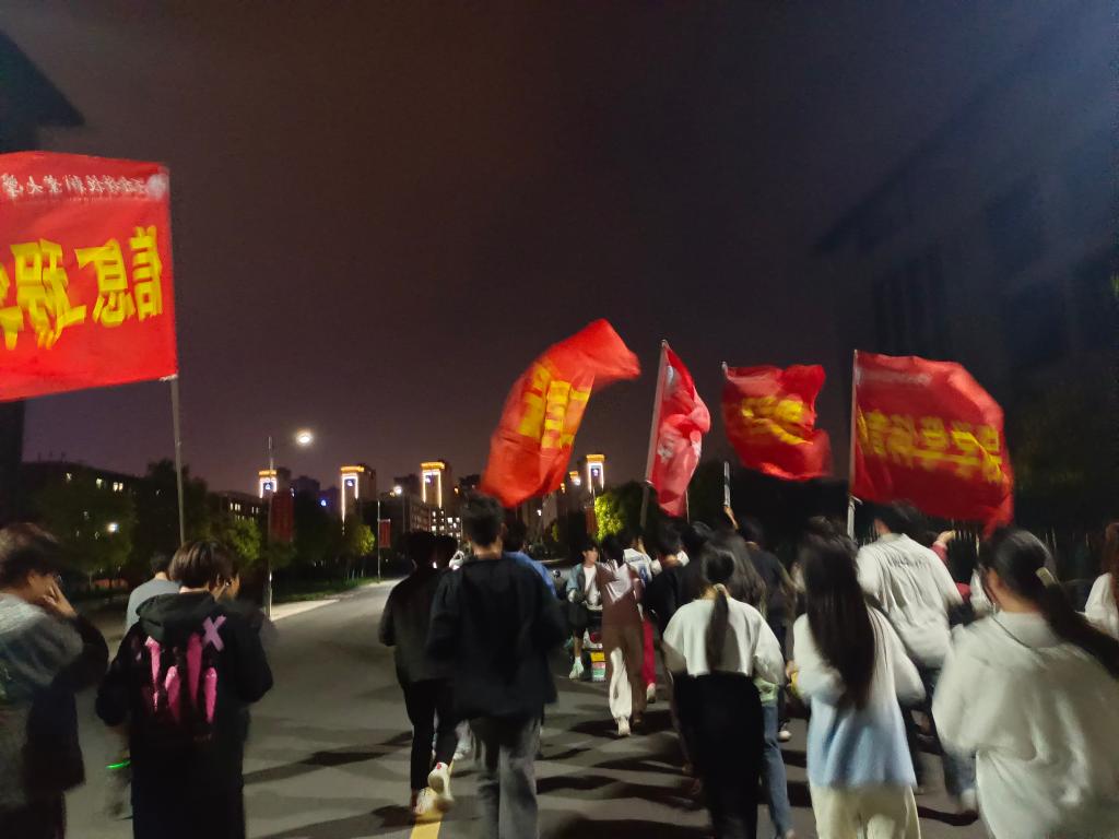 校团委副书记王亚雷为开幕式致辞并宣布开幕。他希望通过开展本次活动倡导全体学生积极响应全民健身的号召,踊跃参加青年健身活动,传播积极健康的生活方式。开幕式上由爱尚舞社、华语乐坛、武术社分别带来舞蹈、歌曲、武术表演。精彩的表演让整个操场的同学们心潮澎湃,尖叫呐喊此起彼伏,掌声雷动久久不息。开幕式最后,各学院方队由围绕校园慢跑的方式正式拉开本次青年健身文化节活动的序幕。同学们在漆黑的夜晚带着荧光手环一起围绕校园跑步,形成了一道靓丽的景色,展现出了青年人的活力。