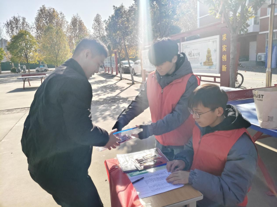 随着志愿者和负责人到场后,此次活动正式开始。活动伊始,志愿者在中专广场特设助力考研站点,将考试用具分发给他们,并引导他们在横幅上留下着对知识的渴望和对未来的憧憬,同时他们也希望通过不懈的努力和坚持,成功破茧成“硕”,开启他们学术生涯的新篇章。