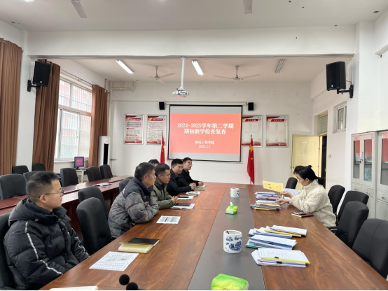 3月7日下午,教务处教学检查组工作人员李贝贝、孔丹妮在敏行楼212室对我院期初教学检查中存在的问题进行针对性复查,我院副院长胡士齐、全体教研室主任提前到场迎接检查。