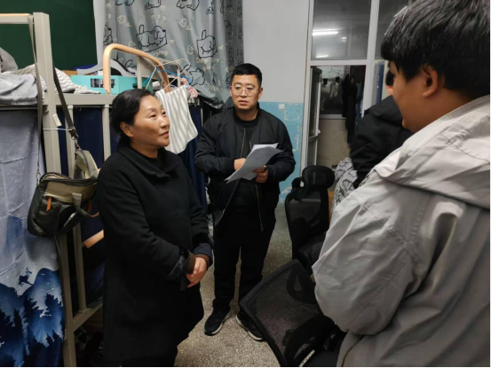 在走访过程中,院领导一行不仅关心学生的生活起居,更将学生的安全牢记于心。他们仔细查看了宿舍的用电设施、卫生环境及消防安全情况,对发现的安全隐患现场提出了整改意见。高有堂院长特别强调:“安全无小事,尤其是在冬季,大家一定要牢固树立安全意识,严禁使用违规电器,做到人走断电,确保宿舍安全,这既是对自己负责,也是对他人负责。”