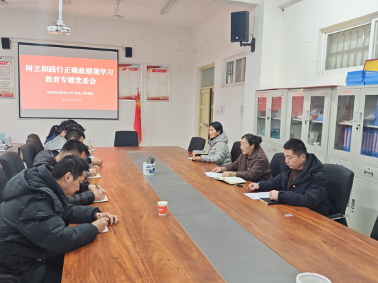 为深入学习贯彻习近平总书记关于树立和践行正确政绩观的重要论述,全面落实校党委统一工作部署,2026年3月6日下午16点,机电工程学院召开树立和践行正确政绩观学习教育启动部署会,学院党委班子成员、各党支部书记参会,会议由学院党委书记崔海花主持。